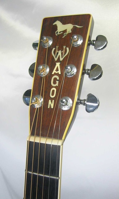 70年代当時に管楽器商社プリマ楽器と東海楽器のOEMで誕生した希少ブランド、Hay Wagon (TOKAI) HW-100の入荷です。1977年から1978年頃までの短期間のみの生産でマニアックなジャパン・ヴィンテージ・ファンには堪らない逸品です。本ギターはD-28タイプのシンプルなルックスですが、ヘッドもシャープなコリングス楓のシェイプなデザインが採用され、ヘッドの馬のデザイン・インレイも印象的で東海楽器製の制作技術で製作されたレアモデルです。トップはスプルース単板、サイド&バックはハカランダ材で製作されバックはハカランダ3ピース、ヘッドにはU.S.A製グローバーペグ、バーティカルロゴ(縦ロゴ)。漆黒のエボニー指板&ブリッジ、ポジションマークはダイヤモンド・インレイ、ヘリンボーン・バインディング、アンダーフィニシュピックガードなど東海楽器製の逸品です。サウンドは締まりの有るタイトな低域にハカランダ特有のレスポンスの良い音抜けと、キラキラと煌びやかに響く高銀域も魅力です。