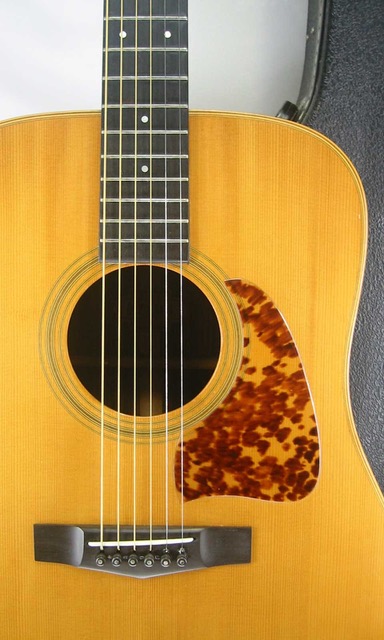 状態はピックガード周りに薄くスクラッチ傷とブリッジの1弦側に目立たない打コンは見受けられますが、パッと見は目立つ酷いダメージや木部のクラックなどは見受けられません。サイドも小傷と小さな打コンは見られますが酷いダメージもなくバックもボディー左下に線傷と小さな当て傷ぐらいで年代を考ええれば美品を保っていると思います。ネック裏も軽微な線傷と8F裏に打コンは見られますが凄く気になるダメージでは無く演奏性も問題はないと思います。弦長約641mm、ナット幅約43mm、弦高は12F6弦約2.mm、1弦約1.5mmと弾きやすい調整がされており、トラスロッドはナット下に有り鉄棒をロッドの穴に差し込んで回すタイプですが現在はナットは固定されておりますが、ネックの元置きなども見られずネックを含めプレヤビリティも良好です。当時の汎用ハードケースも付属しています。中古市場でも滅多に出ない稀少モデルです。是非この機会にコンプリートして下さい!