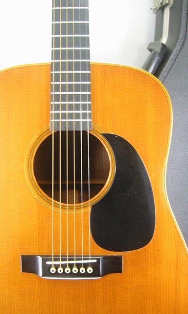 サウンドはノンスキャリップドXブレイシングが採用され、低音は低音らしく野太く奥行きの有る鳴りで、中域の熟れた音の立ち上がりとサスティーンが心地良く、また高音域の艶の有る煌びやかで広がりの有る倍音が心地良い鳴りの逸品です!フィラットピッキングはもちろん、フィンガーで爪弾いても抜群の鳴りでリアル・ヴィンテージにも匹敵するお勧め品です!状態はペグの曇りも無く輝いており機能的にも問題はありません。トップは年代相応の日焼けがありリアル・ヴィンテージの渋さがあり、ピックガードとサウンドホールの僅かな隙間にスクラッチ傷とピックガード下など塗装上のスクラッチ傷や軽い打痕などありますが年代相応ので打パッと見た感じでは酷く目立つ酷いダメージは見受けられません。サイド&バックも年代から考えれば綺麗な状態を保っておりバインディング角に軽い打コンはありますが目立たないレベルです。本ギターも経年のバインディング浮きの修理が施され、収縮による縮みをバックのネックヒール下で補強した跡が見られます。また入荷時にウエストのバインディングに僅かな浮きが見られましたので当店で修理済みです。またネック裏のベタつきがあったのか綺麗にリフィニシュされフレットも交換をされておりプレヤビリティは良好です。弦長約645mm、ナット幅約43mm、弦高は12F6弦で約2.5mm、1弦約2mmと標準的でサドルの余裕も僅かに有りネックの反りや元起も見受けられず、フレットの減りも僅かでネックを含めプレイヤビリティも良好です。オリジナルハードケース、取説も付属しています。年代なりの調整が施され、バインディング等の修復歴有りの特価品です。稀少なギターですがお買得価格に設定をさせて頂きました、是非この機会にお試し頂ければ幸いです!