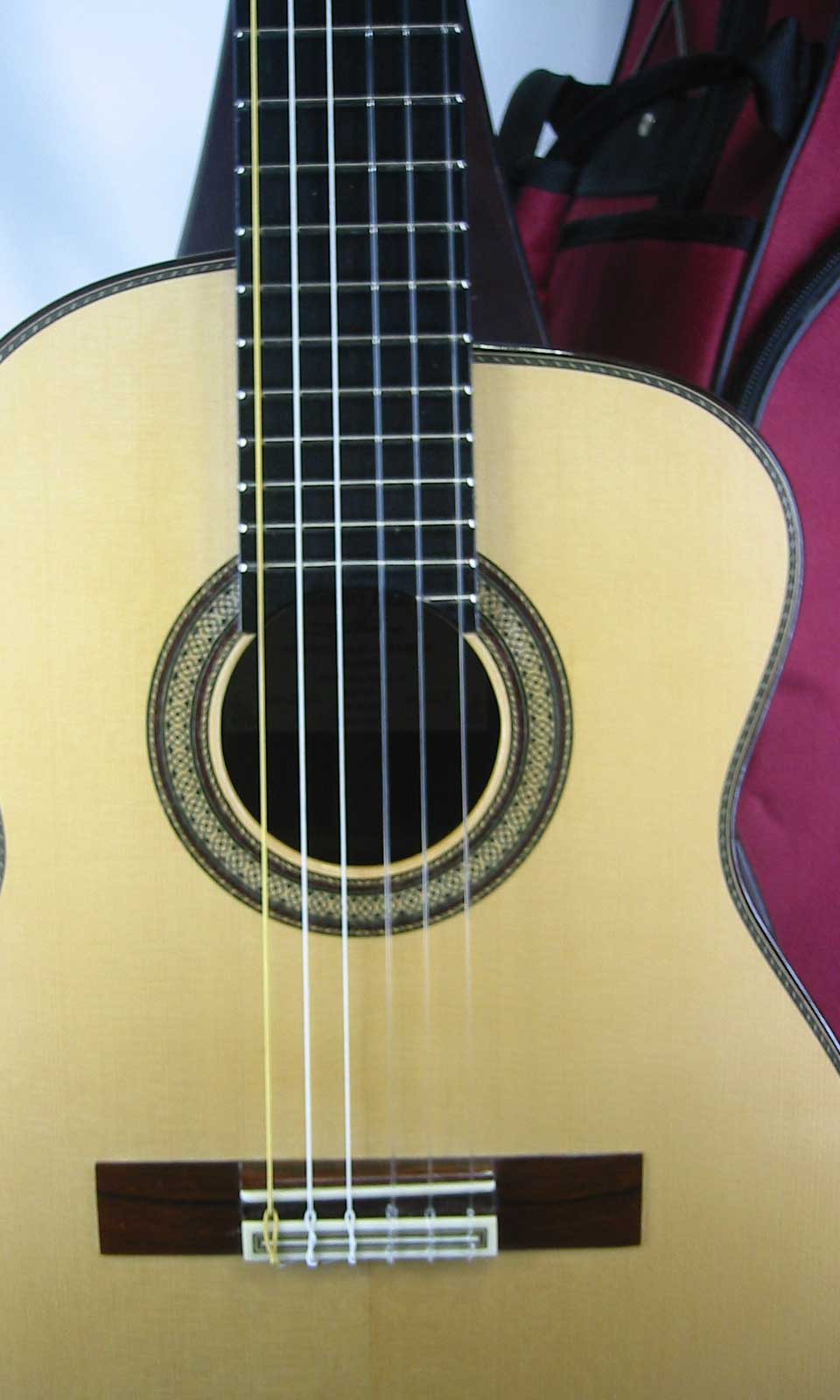 ナット幅約50mm、弦長約530mm、弦高は12F6弦約3.8mm、1弦約3mm、サドルの余裕も見られネックを含めプレヤビリティも良好です。可愛いオリジナル・背もハードケースも付属しています。ルックスも可愛いく何時でもそばに置いて爪弾きたくなる逸品です。