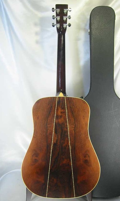 状態はペグがB.Cリッチのペグに交換され、ブリッジの6弦側にブリッジの採寸した跡と、トップの右ショルダーのバインディングに継いだ跡があります。その他は目立つダメージも見受けられず年代を考えれば綺麗なコンディションを保っております。ストラップピンがヒール横のネックブロック箇所に装着済みです。ピックアップの取付履歴等はありません。