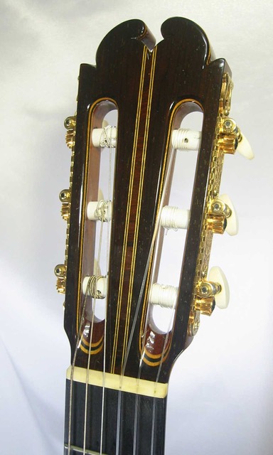 寡作のクラシックギター製作家 佐藤 真比古氏が製作された希少モデル、Mahiko Sato (佐藤 真比古)Classic Modelの入荷です!本器は製作家 佐藤 真比古氏が製作されたモデルで、650mmスケール、ナット幅51mmで、トップはスプルース単板、サイド&バックは希少なブラジリアン・ローズウッド(ハカランダ)単板が使用され、マホガニーネック、エボニー指板、ハカランダ・ブリッジ、ウッド・バインディングの逸品です。ヘッドやロゼッタなど装飾デザインも個性的で作り込み精度の高さを感じるモデルです。ボディー内部のインナーラベルにはモデル名は無くご本人のサインと製造年だけが記載されております。